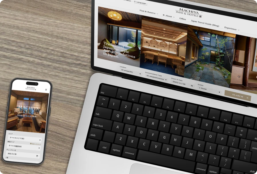 日本文化や町家の魅力を、より多くの人に届けるための発信を行うチームです。公式サイトをはじめとするWeb全般やSNSの運用、キャンペーン企画、国内外へのPRを通じて、ブランドの価値を高めていきます。アクセスデータや市場動向を分析し、戦略を立てながら数字から次の一手を導き出すのも大切な役割。クリエイティブな感性とデータを駆使した戦略設計の両輪で、新しい挑戦を続けています。